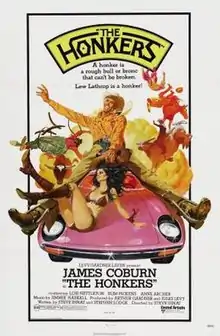 The Honkers is a 1972 American drama film directed by Steve Ihnat and written by Steve Ihnat and Stephen Lodge. The film stars James Coburn, Lois Nettleton, Slim Pickens, Anne Archer, Richard Anderson and Joan Huntington. The film was shot in Carlsbad, New Mexico and released on May 17, 1972, by United Artists.[1][2]