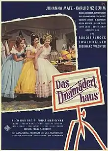 The House of Three Girls (German: Das Dreimäderlhaus) is a 1958 Austrian-West German musical film directed by Ernst Marischka and starring Karlheinz Böhm, Rudolf Schock and Magda Schneider.[1] It is based on the operetta Das Dreimäderlhaus. The story had previously been made into the film Three Girls for Schubert in 1936.