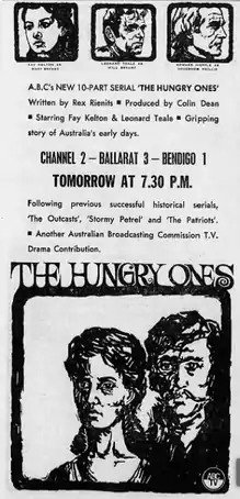 The Hungry Ones was an Australian television mini-series. It was a period drama about a pair of husband and wife convicts trying to go straight, consisting of 10 30-minute black-and-white episodes, which aired on ABC. Unlike previous serials it was videotaped rather than performed live to camera.[2]