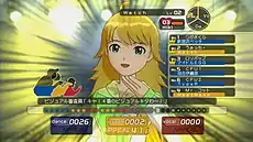 When the player chooses to do an audition, the idol will use the previously chosen song and costume if she passes the audition; the song is also used during the audition. Each costume and song have either a vocal, dance or visual attribute which will affect the idol's statistics and thus the results of the audition. There are three types of auditions: ones limited to idols with an E or F rank, national auditions for idols of any rank, and special auditions that can be taken after satisfying certain conditions. Once an audition is chosen, the player can view the rank and level of the other idols who are auditioning. While the game's network was still active up to 2010, the game would match up to five other players from around the country who were auditioning at the same time; if enough players could not be found, non-player characters would fill the necessary spots. When taking an audition, the player guides the idol to appeal to three judges in vocal, dance and visual image by receiving points in each category.[7] How many points an idol receives when appealing is dependent on her statistics. Each audition is divided into three segments of nine attempts at an appeal followed by a mid-audition review. At the end of each segment, the three idols with the most points in a given image category will receive a number of stars in that category dependent on the current popularity trends from the idol report; an idol will also lose a star if she has the fewest points in a given category.