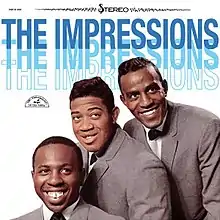 The Impressions is the debut album by the American soul music group of the same name. It produced six chart hit singles, including their biggest hit, the Billboard top ten pop smash "It's All Right", and the top 20 hit, "Gypsy Woman". After the departure of original Impressions lead singer Jerry Butler to a successful solo career, the other original members, brothers Arthur and Richard Brooks also left. The remaining original members, Curtis Mayfield, Sam Gooden and Fred Cash, chose not to replace them. Instead, they scaled down to a trio, and went on to become one of America's top R&B vocal groups.[4]