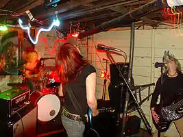 Lead singer Mindy Johnson has also been a member of The Little Black Books and currently also plays with the doom metal band WOLF BLOOD. Bassist Nikki Moeller has also been a member of the band Boy Girl Boy Girl & currently also plays with Dad's Acid. Drummer Chris C. Dubz has been part of numerous bands including the Acceleratti, Some Peoples Kids and is currently the drummer for Minneapolis rockers Squares. He is known to often 'take his shirt off' when requested.
