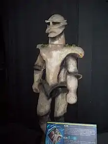 The Melkur statue's design was based on a 1913 statue by Umberto Boccioni.[2] The decaying Master's robe was the same costume that had been used in The Deadly Assassin.[3]