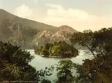 The Lady of the Lake is a narrative poem by Sir Walter Scott, first published in 1810. Set in the Trossachs region of Scotland, it is composed of six cantos, each of which concerns the action of a single day.[1] There are voluminous antiquarian notes. The poem has three main plots: the contest among three men, Roderick Dhu, James Fitz-James, and Malcolm Graeme, to win the love of Ellen Douglas; the feud and reconciliation of King James V of Scotland and James Douglas; and a war between the Lowland Scots (led by James V) and the Highland clans (led by Roderick Dhu of Clan Alpine). The poem was tremendously influential in the nineteenth century, and inspired the Highland Revival.