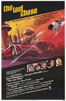 The Last Chase is a 1981 Canadian-American dystopian science fiction film directed by Martyn Burke who was also the producer on the film, produced for Argosy Films. The film stars Lee Majors, Burgess Meredith and Chris Makepeace in a futuristic scenario about a former racing driver who reassembles his old Porsche and drives to California in a world where cars and motor vehicles of all kinds have been outlawed by the powers that be.[2]