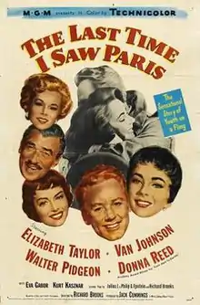 The Last Time I Saw Paris is a 1954 Technicolor romantic drama made by Metro-Goldwyn-Mayer.[2][3] It is loosely based on F. Scott Fitzgerald's short story "Babylon Revisited." It was directed by Richard Brooks, produced by Jack Cummings and filmed on locations in Paris and the MGM backlot. The screenplay was by Julius J. Epstein, Philip G. Epstein and Richard Brooks.