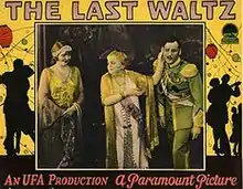The Last Waltz (German: Der letzte Walzer) is a 1927 German silent romance film directed by Arthur Robison and starring Liane Haid, Willy Fritsch and Suzy Vernon. It was based on the 1920 operetta Der letzte Walzer by Oscar Straus.