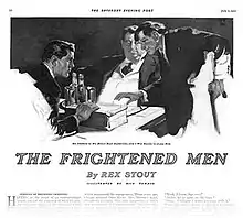 The League of Frightened Men is the second Nero Wolfe detective novel by Rex Stout. The story was serialized in six issues of The Saturday Evening Post (June 15–July 20, 1935) under the title The Frightened Men. The novel was published in 1935 by Farrar & Rinehart, Inc. The League of Frightened Men is a Haycraft Queen Cornerstone, one of the most influential works of mystery fiction listed by crime fiction historian Howard Haycraft and Ellery Queen.[1]