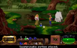Forced to find transport to a volcano island that links to the center of the world, Zanthia quickly recovers her missing equipment in the nearby swamp, and questions who stole them. Zanthia eventually secures passage to the center of the world and locates an anchor stone, only for Marko to contact her and reveal that the hunt for one was nothing but a snipe hunt, used by The Hand to distract Zanthia and the other Mystics from its plan to wipe Kyrandia from the world. Marko reveals the real cause of the kingdom's predicament lies at the "Wheel of Fate", but is dragged away before he can help Zanthia reach it. Reaching the surface, Zanthia begins making her way to the clouds, where the Wheel of Fate resides, along the way meeting two men seeking to capture a living disembodied foot. Aiding them, she learns that The Hand is a fragment of a long-deceased gigantic evil sorcerer, and that it seeks to wipe out a kingdom to create a void that the sorcerer can use to rebuild himself.