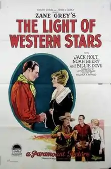 The Light of Western Stars is a lost[1][2] 1925 American silent Western film directed by William K. Howard and starring Jack Holt, Billie Dove, and Noah Beery. The film was based on a Zane Grey novel and had been filmed before in 1918.[3]
