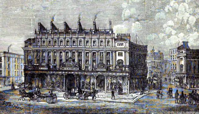 The London General Mourning Warehouse was a mourning warehouse on Regent Street. It was established by William Chickall Jay in 1841 and so it was commonly known as Jay's. It sold all types of goods needed for funerals and the elaborate mourning of the Victorian era.[1][2][3][4][5]