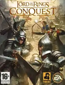 The Lord of the Rings: Conquest is a 2009 action game developed by Pandemic Studios and published by Electronic Arts. It is derived from The Lord of the Rings film trilogy, and borrows many gameplay mechanics from Pandemic's Star Wars: Battlefront games. The game allows the player to play as both the forces of good and evil, but unlike The Lord of the Rings: The Battle for Middle-earth, the latter option is based around Sauron stopping the One Ring from being destroyed and using it to regain his lost power.