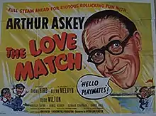 The Love Match is a 1955 British black and white comedy film directed by David Paltenghi and starring Arthur Askey, Glenn Melvyn, Thora Hird and Shirley Eaton.[2] A football-mad railway engine driver and his fireman are desperate to get back in time to see a match. It was based on the 1953 play by Glenn Melvyn, one of the stars of the film.[3] A TV spin-off series Love and Kisses, appeared later in 1955.[4]