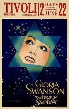 The Love of Sunya (also known as The Loves of Sunya) is an American silent drama film made in 1927. It was directed by Albert Parker, and was based on the play The Eyes of Youth by Max Marcin and Charles Guernon. Produced by and starring Gloria Swanson, it also stars John Boles and Pauline Garon.[1] A copy of The Love of Sunya survives and in the Paul Killiam collection.[2]