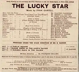The Lucky Star is an English comic opera, in three acts, composed by Ivan Caryll, with dialogue by Charles H. Brookfield (revised by Helen Lenoir) and lyrics by Adrian Ross and Aubrey Hopwood. It was produced by the D'Oyly Carte Opera Company and opened at the Savoy Theatre on 7 January 1899 for a run of 143 performances.