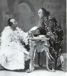 The Times commented, "One portion of a single finale is all that remains of Chabrier's work in the production. There is in the book of words a wholly unnecessary announcement to the effect that this portion is by a different hand from the rest; the 'join' is quite unmistakable, for during the too-short extract from the original score the music suddenly becomes humorous, charming and brilliantly melodious, besides being orchestrated in a fresh and musicianly way."[1] The Manchester Guardian praised Caryll's music for its "tuneful dance melodies … while the concerted pieces are marked by abundant piquancy and animation." Passmore, the paper said, "maintains the spirit of fun at fever heat whenever he is upon the stage."[3] Reviewing the touring production later in the same year, the paper commented on the libretto: "The Gilbertian kind of comic opera is not the worst kind. Though rather irritating with its unchanging tone of frigid banter, it is ambrosia compared with the stuff here offered by Messrs Leterrier, Vanloo, Goodwin, Morse, Brockfield, Ross, Hopwood and Co."[4] The Observer commented that the piece was of a different, and inferior, class to the customary Savoy Operas, but was nonetheless good of its kind.[5]