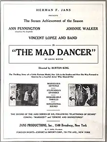 The Mad Dancer is a 1925 American silent drama film directed by Burton L. King and starring Ann Pennington, Johnnie Walker, and Coit Albertson.[1]