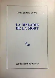 The Malady of Death (French: La Maladie de la mort) is a 1982 novella by the French writer Marguerite Duras. It tells the story of a man who pays a woman to spend several weeks with him by the sea to learn "how to love".