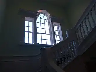 Above the main staircase and in the rear wall of the house is an imposing Palladian style Venetian window which was fitted sometime after the building of the house. It is of the style of the renowned architect James Paine and therefore there is a possibility that it could have been installed in around 1756 when James Paine or his practice was commissioned by John Burdon who owned Hardwick Estate at the time to create follies and buildings in the pleasure grounds of his estate. John Burdon had purchased Robert Wright's mansion house following years of title dispute which was settled in the High Court of Chancery in 1756. An almost identical window is in the dining room of nearby Hatfield College in Durham.