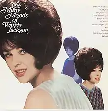 The Many Moods of Wanda Jackson was released in December 1968, making it Jackson's thirteenth studio album. It was originally issued as a vinyl LP, containing six songs on "side one" and five songs on "side two".[3] It was later re-released via Capitol Records Nashville to digital and streaming markets, including Apple Music.[4] The LP spent six weeks on the Billboard Top Country Albums survey, peaking at number 28 in March 1969.[5] It was her seventh album to reach a peak position on the chart.[6] Although a full review was not given, AllMusic did name "I Wish I Was Your Friend", "I'd Do It All Over Again" and "Walk Right Out on My Mind" as "album picks".[1] Two singles were spawned from the album. In October 1968, "I Wish I Was Your Friend" was released as the album's first single.[7] In January 1969, the single peaked at number 51 on the Billboard Hot Country Singles chart.[8] Jackson's cover of "If I Had a Hammer" was spawned as the project's second single in January 1969.[9] The song peaked outside of the country top 40, climbing to number 41 on the Billboard country songs chart in April 1969.[10]