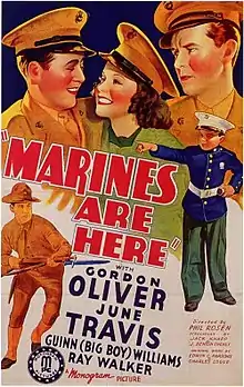 The Marines Are Here is a 1938 American comedy-drama film, directed by Phil Rosen. It stars Gordon Oliver, June Travis, and Ray Walker, and was released on June 8, 1938.