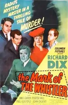 The Mark of the Whistler, (aka The Marked Man) is a 1944 American mystery film noir based on the radio drama The Whistler.[1] Directed by William Castle, the production features Richard Dix, Porter Hall and Janis Carter.[2] It is the second of Columbia Pictures' eight "Whistler" films produced in the 1940s, all but the last starring Dix.[3]