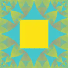 A chip-firing game, in its most basic form, is a process on an undirected graph, with each vertex of the graph containing some number of chips. At each step, a vertex with more chips than incident edges is selected, and one of its chips is sent to each of its neighbors. If a single vertex is designated as a "black hole", meaning that chips sent to it vanish, then the result of the process is the same no matter what order the other vertices are selected. The stable states of this process are the ones in which no vertex has enough chips to be selected; two stable states can be added by combining their chips and then stabilizing the result. A subset of these states, the so-called critical states, form an abelian group under this addition operation. The abelian sandpile model applies this model to large grid graphs, with the black hole connected to the boundary vertices of the grid; in this formulation, with all eligible vertices selected simultaneously, it can also be interpreted as a cellular automaton. The identity element of the sandpile group often has an unusual fractal structure.[1]