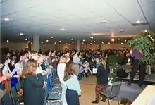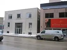 The Meeting Place was originally located in a small office building on Maryland Street prior to moving in 1993 to its current location on Smith Street in what was previously a night club.[2] Church services were held in a temporarily renovated area in the Smith Street building basement while major renovations took place in the soon to be main auditorium.[3] Once the main auditorium began being used for the weekend services, the basement was renovated to accommodate the Children's Ministry program. Subsequent renovations on the top floor have allowed for a theater to be built to accommodate the Youth Ministry programs. In addition, staff offices have been moved around a number of times. Initially these were in the Smith Street building when it was first acquired by the congregation, but were taken out and moved to an office building one block away on Broadway Ave and remained there for a couple of years until once again being relocated to a basement office on Smith Street next door to the main auditorium building.