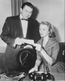 ![]() Michael Anthony (Marvin Miller) hands check to Betty Perkins (Inger Stevens) in a 1956 episode | |
