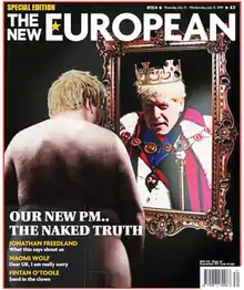 The New European is a British pro-EU weekly newspaper that began publication on 8 July 2016. Launched as a response to the United Kingdom's 2016 EU referendum, its readership is aimed at those who voted to remain within the European Union, with the newspaper's original tagline being "The New Pop-up Paper for the 48%".[1][2] Formerly owned by Archant, it was announced at the beginning of February 2021 that a consortium including founder Matt Kelly, media executive Mark Thompson and former Financial Times editor Lionel Barber had acquired the newspaper.[3]
