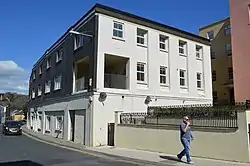 The building was established as the drill hall for "A Squadron" of the Pembroke Yeomanry.[1] "A Squadron" became co-located with the headquarters for the regiment[2] after Yeomanry Headquarters was re-organised at Tenby in 1901.[3][4] The regiment was mobilised at Tenby in August 1914 before being deployed to Egypt[5] but, after the headquarters moved to Haverfordwest, the drill hall was converted for residential use and is now known as "Regency Court".[1]