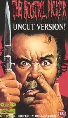 The Nostril Picker is a 1993 horror film of the slasher genre. The film stars Carl Zschering as Joe Bukowski, a homicidal maniac who uses his special ability to get close to his female targets. Despite the name, the film plot does not directly revolve around a man who picks his nose. Instead, Joe Bukowski learns a chant from a homeless man in return for a small proportion of his alcoholic beverage, and this chant transforms Joe into a form of anybody he pleases. Joe is warned that when the chant is performed excessively it will make him crazy, but chooses to ignore this warning. His main victims in the film are teenage girls attending a high school close to his home. He takes the form of a girl and makes a 'friendship' with these girls but decides to murder, rape and eat them one by one.