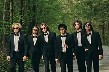 The band came together in the freshman dormitories of North Carolina's Appalachian State University in 2012.[1] Patton Magee and Austin Brose linked up with childhood friends Connor Mikita and Alec Castillo, before being joined by step brothers Shaun Couture & Zachary Merrill.[2] At the end of their freshman year, the group of friends moved into a lake house outside of town and began learning their respective instruments to jam on rudimentary riffs and their favorite garage rock songs.[3] The sextet quickly gained a following in Boone, North Carolina, often performing in the nude at a Boone party palace referred to as the “505 House”.[4] The informal aggregation of friends melded to become a defined unit calling themselves simply “The Nude Party”.[5]