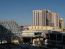 Demolition of the Golden Inn motel began on November 30, 2004, to make room for the Streamline Tower, a 21-story, 251-unit condominium tower that was expected to cost $105 million. Occupancy of the new building was expected around December 2006.[7] Las Vegas Mayor Oscar Goodman attended a publicity event held on the property, which included him kicking off the demolition of the motel with the swing of a sledgehammer.[8] The new project would be located in the center of Goodman's planned entertainment district, as part of a revitalization of the downtown area.[9] Sales began on December 3, 2004.[10]