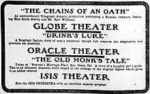 ![]() A contemporary newspaper advertisement for several films, including The Old Monk's Tale. | |