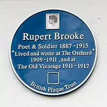 The history of The Orchard started in 1897 (the orchard itself was first planted in 1868) when a group of Cambridge students asked the landlady, Mrs Stevenson of Orchard House, if they could take their tea in the orchard rather than on the front lawn as the custom was. This practice soon became the norm, and the place grew in popularity. The next phase in the history of The Orchard began when the poet Rupert Brooke took up lodging in the house in 1909. A graduate student of great popularity in the university community at the time, Brooke soon attracted a great following at the place, among them Virginia Woolf, John Maynard Keynes, E.M. Forster, Bertrand Russell, Augustus John, and Ludwig Wittgenstein – the so-called Grantchester Group, or the neo-pagans as Woolf called them. Brooke later lodged in a neighbouring house, the Old Vicarage and immortalised both houses in his poem The Old Vicarage, Grantchester. Written while Brooke was in Berlin in 1912, the poem ends with the lines: