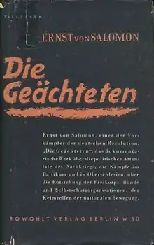 The Outlaws is a 1930 novel by the German writer Ernst von Salomon. Its German title is Die Geächteten, which means "the ostracised". Set between 1919 and 1922, the narrative is based on Salomon's experiences from the Freikorps, and includes an account of the 1922 assassination of foreign minister Walther Rathenau, in which the then 19-year-old Salomon was peripherically involved. The Outlaws was Salomon's debut novel. It was published in English in 1931, translated by Ian F. D. Morrow.[1]