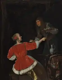 The subject of an oyster meal was painted by other Dutch artists, including Jan Steen, Frans van Mieris the Elder, and Gabriel Metsu. Jacob Ochtervelt painted other versions of the same subject, including an example of 1663-35 held by the Thyssen-Bornemisza Museum in Madrid,[4] and another of 1667 held by the Museum Boijmans Van Beuningen in Rotterdam.[5]
