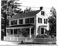Horatio Alger was a prolific writer of somewhat formulaic upbeat rags-to-riches stories aimed primarily at boys. His works were immensely popular, but were not highly regarded by critics. Alger lived in New York City, but spent his summers at this house, where is father, parson to the Eliot Church, lived. The house had been purchased from Oliver Bacon by H. H. Hunnewell, specifically to support the elder Alger. The younger Alger was a regular visitor to the house between 1866 and 1877, and then again from 1879 until 1898, when he moved into the house. He died at his sister's house in Natick in 1899.[2]