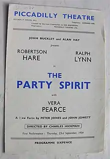 The Party Spirit is a 1954 British comedy play by Peter Jones and John Jowett.