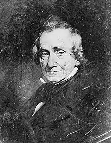 Thomas Sully was an English-born and American-raised artist in the nineteenth century. As a young adult, Sully moved back to England and studied art under the tutelage of Neoclassical artists Benjamin West and Sir Thomas Lawrence. Sully was heavily influenced by West while in London. West instructed Sully to copy works in his personal collection to improve his skills. Similarities between Sully's The Passage of the Delaware and West's The Death of General Wolfe can be seen in the arrangement of officers around the central figure of the painting.[5]