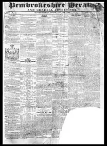 The Pembrokeshire Herald and General Advertiser was an English-language newspaper published for the communities in Pembrokeshire and Cardiganshire in Wales from 1844 to 1910. News was focused primarily on agriculture and commerce.[1]