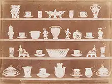 The Pencil of Nature is a book by William Henry Fox Talbot which was the first commercially published book to be illustrated with photographs.[1][2] Published by Longman, Brown, Green & Longmans in six fascicles between 1844 and 1846, the book detailed Talbot's development of the calotype photographic process and included 24 calotype prints, each one pasted in by hand, illustrating some of the possible applications of the new technology. It is regarded as an important and influential work in the history of photography and was described by the Metropolitan Museum of Art as "a milestone in the art of the book greater than any since Gutenberg's invention of moveable type."[3]