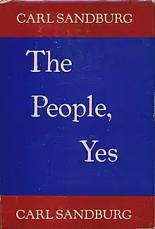 The People, Yes is a book-length poem written by Carl Sandburg and published in 1936. The 300 page work is thoroughly interspersed with references to American culture, phrases, and stories (such as the legend of Paul Bunyan). Published at the height of the Great Depression, the work lauds the perseverance of the American people in notably plain-spoken language. It was written over an eight-year period. It is Sandburg’s last major book of poetry.[1][2]
