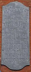 The firm of Amédée Joubert & Son provided services of upholstery, gilding, the importation of Aubusson tapestry, Lyons silks and oriental carpets and the manufacture of French bedding, chairs etc. and continued until 1932, lastly under Felix Joubert who also made dolls' house furniture for Queen Mary.[6] By 1914, however, the showroom was closed and the rest of the building rented out as studios with only the basement in use by the Jouberts as a workshop.[7]