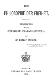 The Philosophy of Freedom is the fundamental philosophical work of esotericist Rudolf Steiner (1861–1925). It addresses the question of whether and in what sense human beings can be said to be free. Originally published in 1894 in German as Die Philosophie der Freiheit,[1][2] with a second edition published in 1918, the work has appeared under a number of English titles, including The Philosophy of Spiritual Activity (the title Steiner proposed for the English-language translation[3]), The Philosophy of Freedom, and Intuitive Thinking as a Spiritual Path.