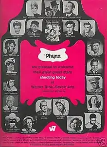 The Phynx is a 1970 American comedy film directed by Lee H. Katzin[1] about a rock and roll band named The Phynx and their mission in foreign affairs. The group is sent to Albania to locate celebrity hostages taken prisoner by Communists.