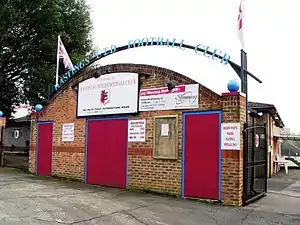 The ground would see a number of improvements during Hastings United's tenure, including the erection of two new stands at the Elphinstone Road end of the ground in the mid 1950s and the erection of floodlights in 1964. The old speedway track was eventually concreted over to allow spectators to get closer to the playing area and for the erection of the dugouts in front of the main stand.[12] A new squash complex constructed in the opposite corner to the main turnstiles was opened in 1980, but was later sold off to recuperate some of the debt owed by Hastings United.[13][1]