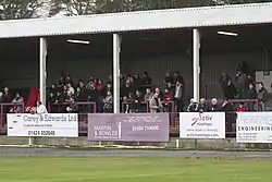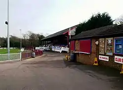The most prominent structure at the ground is the main stand, which covers about three quarters of the length of one side of the pitch. The capacity is 800 for seated spectators mostly on wooden benches, but there are plastic seats to the centre in front of the public address box, some of which are reserved for board members and other guests. There are more plastic seats located to the left of this block covering the front rows, which were relocated from the Firs after St Leonards folded in 2004. Underneath the main stand are the changing rooms, boardroom and a tea bar. The age of the main stand has led to ever increasing maintenance costs for the club and is a major factor in their effort to find a new stadium.