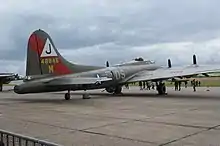 She was featured as the fictional B-17F aircraft Mother and Country in the 1990 film Memphis Belle, she was painted on one side to resemble the older B-17F. She is credited in the 2012 film Red Tails. The Pink Lady was based at Paris - Orly Airport, France, just to the south of Paris, until its hangar was listed for demolition. In October 2006, she was stored for winter 2006–2007 in a hangar in St Yan, (Saône et Loire), France. Afterwards, she was based at Melun Villaroche (LFPM), south-east of Paris, where some Dassault (Mirage, Mystère or Balzac) aircraft made their first flights in the '80s. She has made some appearances, like at Melun in 2008 or the Paris Air Show in 2009. Her last flight from Melun Villaroche (LFPM) (her last base before retirement) was to Cerny-La Ferté Alais (LFFQ) (the airfield of Amicale Jean-Baptiste Salis) in March 2010.[1] As of 29 October 2011,[2] she is inside a new hangar where she will wait some years before flying again.[3]